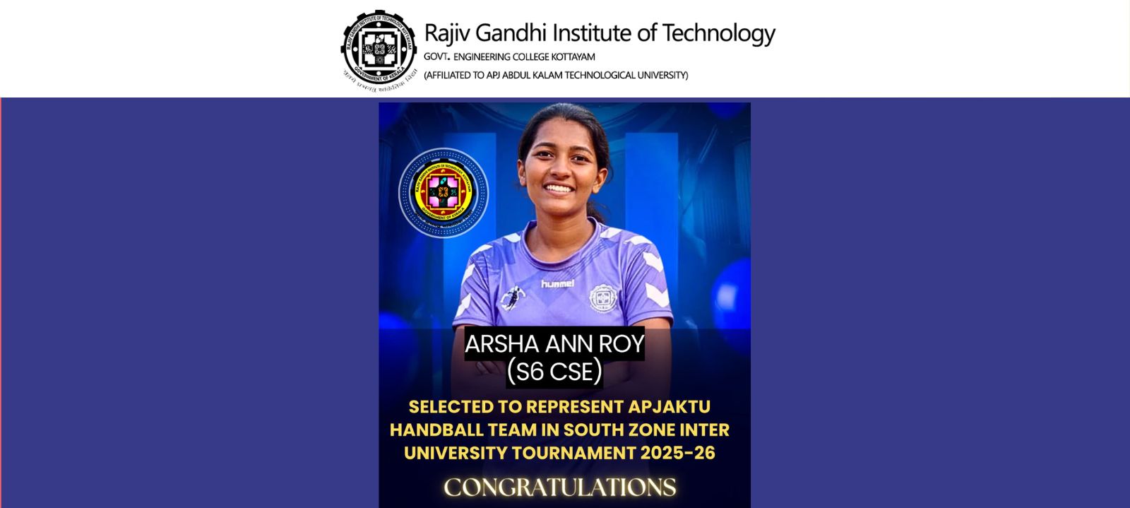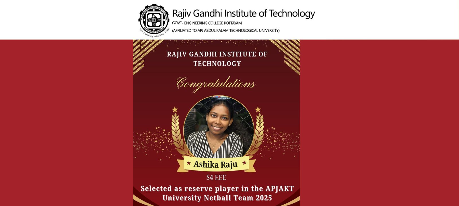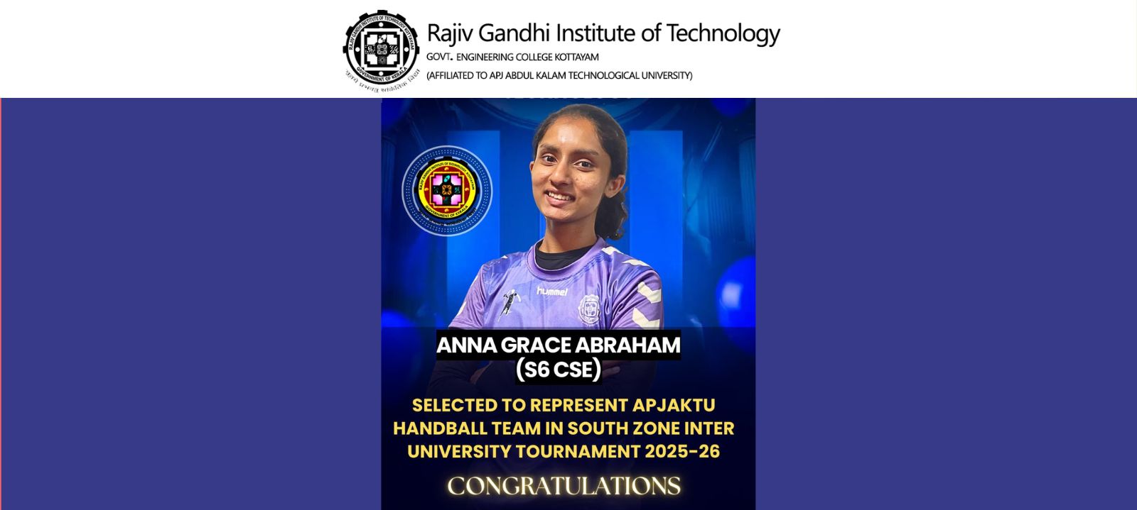 Rajiv Gandhi Institute of Technology (GOVT. ENGINEERING COLLEGE KOTTAYAM), named after the late Prime Minister Sri Rajiv Gandhi, run by the Government of Kerala, started functioning in 1991. It has established a vast infrastructure and put together a team of dedicated teachers. The institution has become one of the leading technical Institutes in Kerala.
