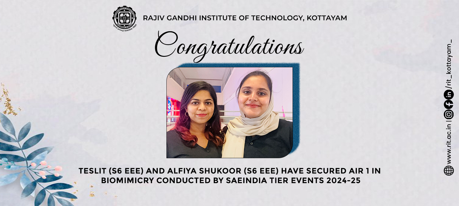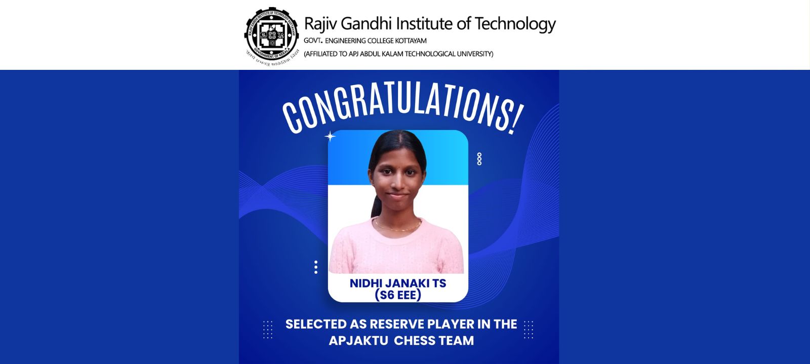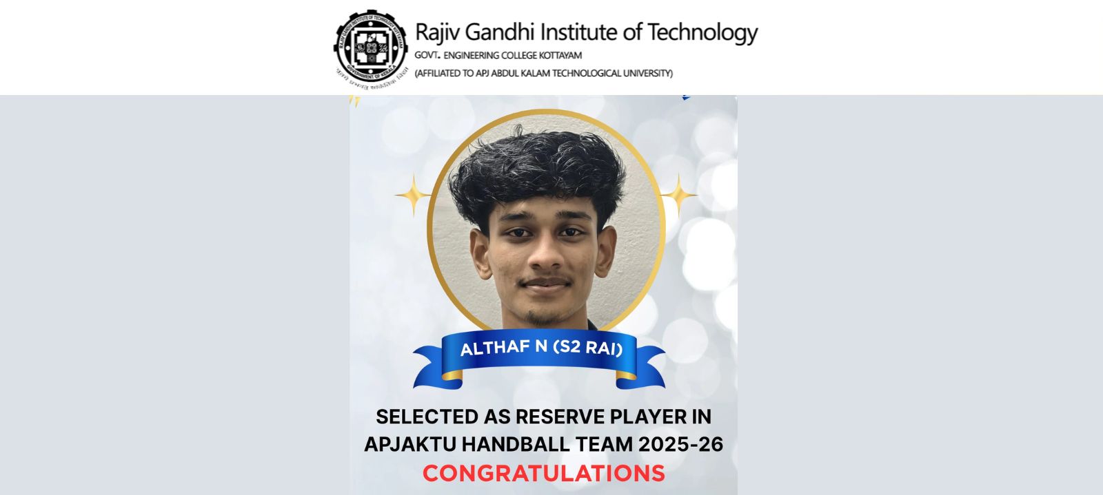 Rajiv Gandhi Institute of Technology (GOVT. ENGINEERING COLLEGE KOTTAYAM), named after the late Prime Minister Sri Rajiv Gandhi, run by the Government of Kerala, started functioning in 1991. It has established a vast infrastructure and put together a team of dedicated teachers. The institution has become one of the leading technical Institutes in Kerala.